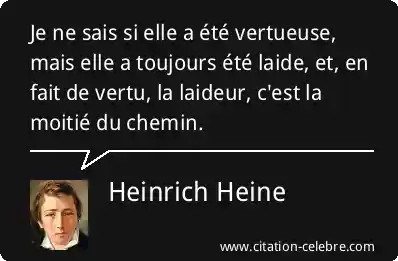 Je ne sais si elle a été vertueuse, mais elle a toujours été laide, et, en fait de vertu, la laideur, c'est la moitié du chemin.