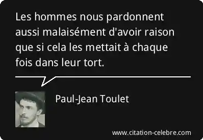 Les hommes nous pardonnent aussi malaisément d'avoir raison que si cela les mettait à chaque fois dans leur tort.