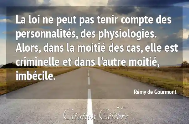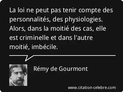 La loi ne peut pas tenir compte des personnalités, des physiologies. Alors, dans la moitié des cas, elle est criminelle et dans l'autre moitié, imbécile.