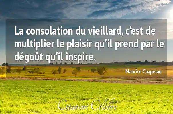La consolation du vieillard, c'est de multiplier le plaisir qu'il prend par le dégoût qu'il inspire.