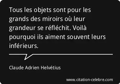 Tous les objets sont pour les grands des miroirs où leur grandeur se réfléchit. Voilà pourquoi ils aiment souvent leurs inférieurs.