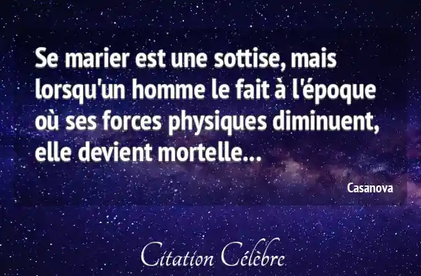 Se marier est une sottise, mais lorsqu'un homme le fait à l'époque où ses forces physiques diminuent, elle devient mortelle...
