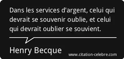 Dans les services d'argent, celui qui devrait se souvenir oublie, et celui qui devrait oublier se souvient.