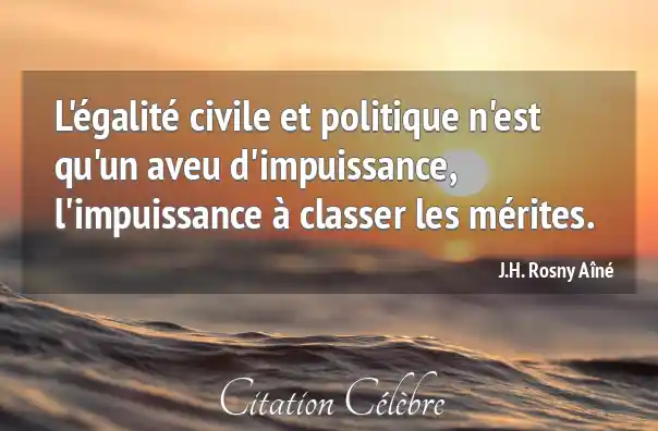 L'égalité civile et politique n'est qu'un aveu d'impuissance, l'impuissance à classer les mérites.
