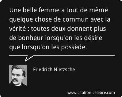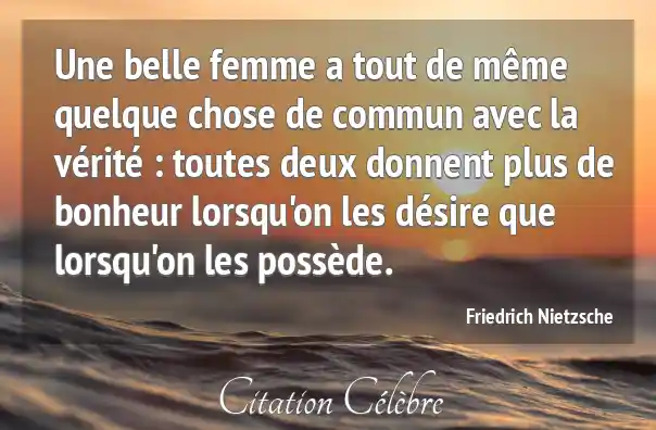 Une belle femme a tout de même quelque chose de commun avec la vérité : toutes deux donnent plus de bonheur lorsqu'on les désire que lorsqu'on les possède.