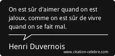 On est sûr d'aimer quand on est jaloux, comme on est sûr de vivre quand on se fait mal.