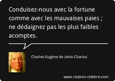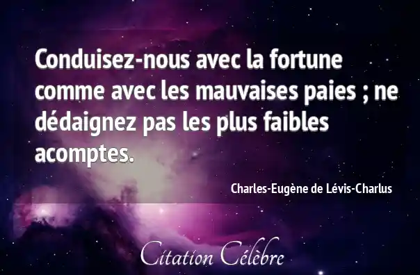 Conduisez-nous avec la fortune comme avec les mauvaises paies ; ne dédaignez pas les plus faibles acomptes.