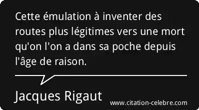 Cette émulation à inventer des routes plus légitimes vers une mort qu'on l'on a dans sa poche depuis l'âge de raison.