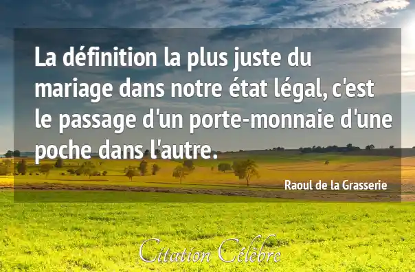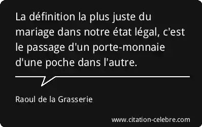 La définition la plus juste du mariage dans notre état légal, c'est le passage d'un porte-monnaie d'une poche dans l'autre.