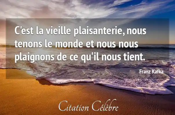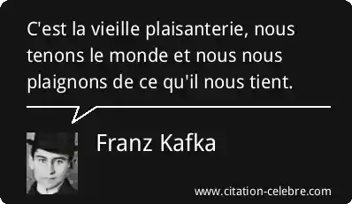 C'est la vieille plaisanterie, nous tenons le monde et nous nous plaignons de ce qu'il nous tient.