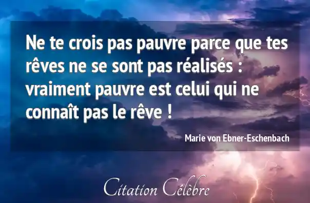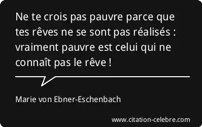 Ne te crois pas pauvre parce que tes rêves ne se sont pas réalisés : vraiment pauvre est celui qui ne connaît pas le rêve !