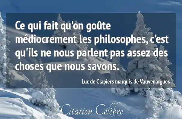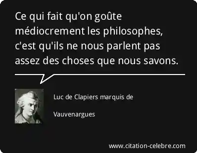 Ce qui fait qu'on goûte médiocrement les philosophes, c'est qu'ils ne nous parlent pas assez des choses que nous savons.