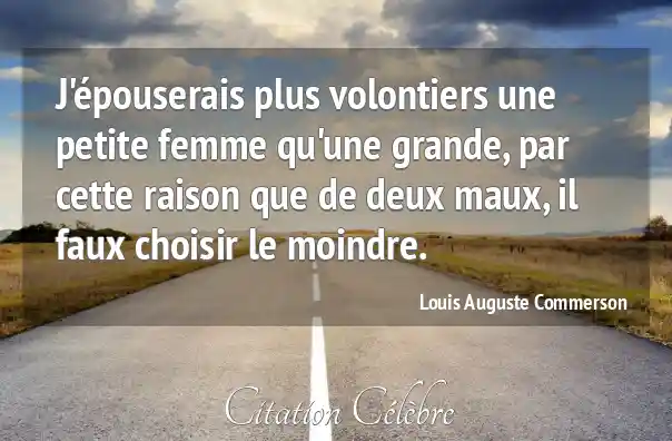 J'épouserais plus volontiers une petite femme qu'une grande, par cette raison que de deux maux, il faux choisir le moindre.