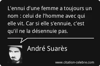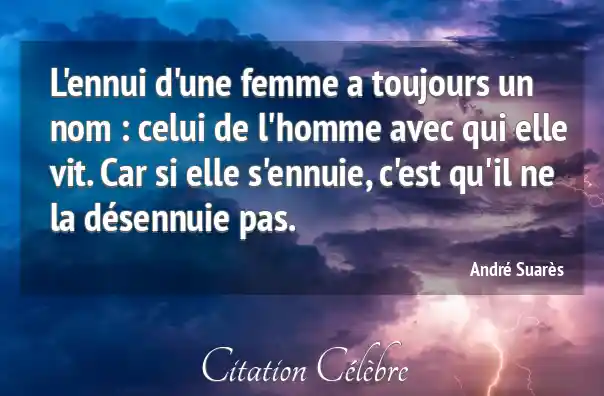 L'ennui d'une femme a toujours un nom : celui de l'homme avec qui elle vit. Car si elle s'ennuie, c'est qu'il ne la désennuie pas.