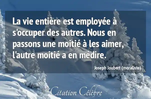 La vie entière est employée à s'occuper des autres. Nous en passons une moitié à les aimer, l'autre moitié a en médire.