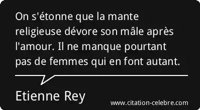 On s'étonne que la mante religieuse dévore son mâle après l'amour. Il ne manque pourtant pas de femmes qui en font autant.