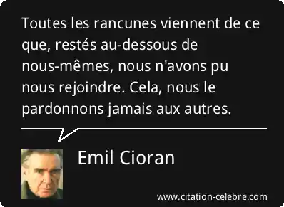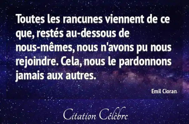 Toutes les rancunes viennent de ce que, restés au-dessous de nous-mêmes, nous n'avons pu nous rejoindre. Cela, nous le pardonnons jamais aux autres.