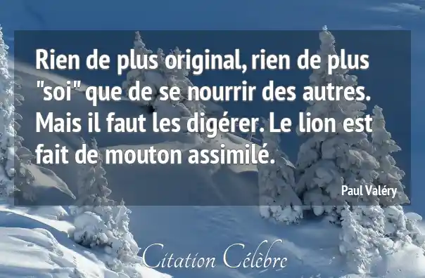 Rien de plus original, rien de plus "soi" que de se nourrir des autres. Mais il faut les digérer. Le lion est fait de mouton assimilé.