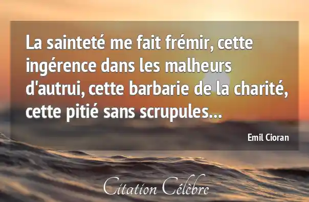 La sainteté me fait frémir, cette ingérence dans les malheurs d'autrui, cette barbarie de la charité, cette pitié sans scrupules...