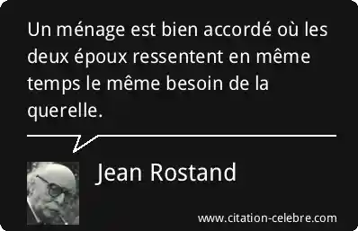 Un ménage est bien accordé où les deux époux ressentent en même temps le même besoin de la querelle.
