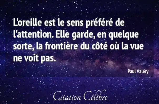 L'oreille est le sens préféré de l'attention. Elle garde, en quelque sorte, la frontière du côté où la vue ne voit pas.