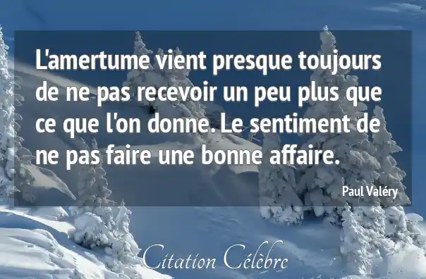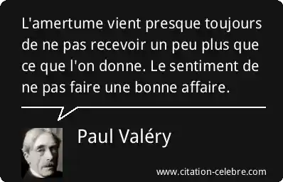 L'amertume vient presque toujours de ne pas recevoir un peu plus que ce que l'on donne. Le sentiment de ne pas faire une bonne affaire.