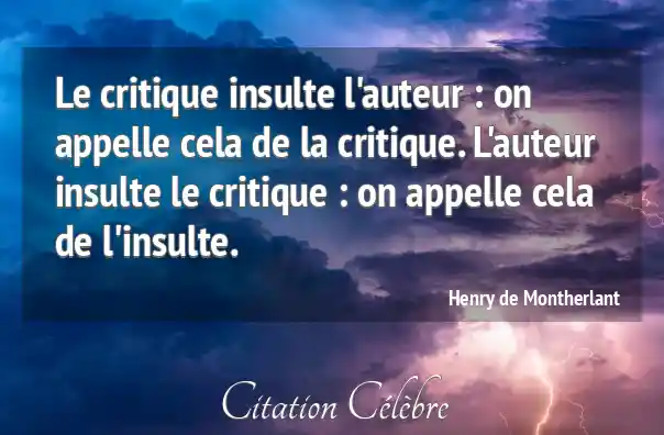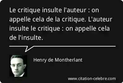 Le critique insulte l'auteur : on appelle cela de la critique. L'auteur insulte le critique : on appelle cela de l'insulte.