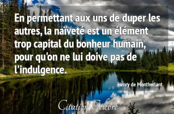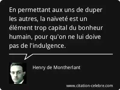 En permettant aux uns de duper les autres, la naïveté est un élément trop capital du bonheur humain, pour qu'on ne lui doive pas de l'indulgence.