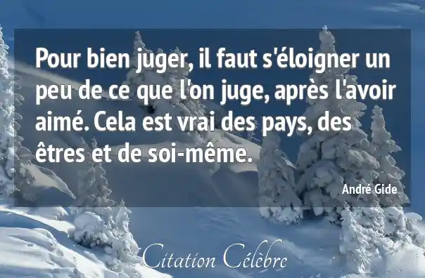 Pour bien juger, il faut s'éloigner un peu de ce que l'on juge, après l'avoir aimé. Cela est vrai des pays, des êtres et de soi-même.