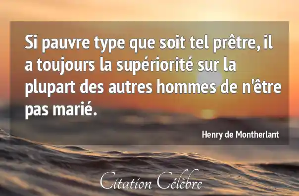 Si pauvre type que soit tel prêtre, il a toujours la supériorité sur la plupart des autres hommes de n'être pas marié.