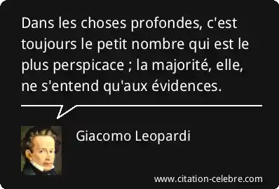 Dans les choses profondes, c'est toujours le petit nombre qui est le plus perspicace ; la majorité, elle, ne s'entend qu'aux évidences.