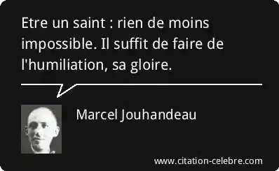 Etre un saint : rien de moins impossible. Il suffit de faire de l'humiliation, sa gloire.