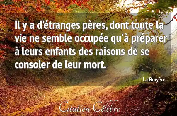Il y a d'étranges pères, dont toute la vie ne semble occupée qu'à préparer à leurs enfants des raisons de se consoler de leur mort.
