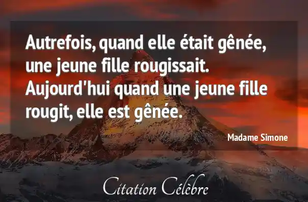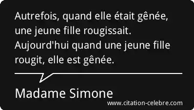 Autrefois, quand elle était gênée, une jeune fille rougissait. Aujourd'hui quand une jeune fille rougit, elle est gênée.