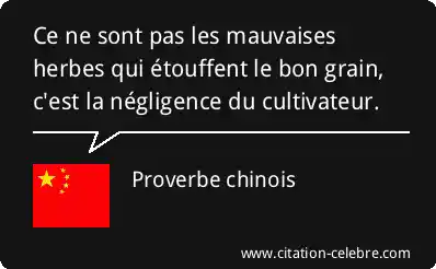 Ce ne sont pas les mauvaises herbes qui étouffent le bon grain, c'est la négligence du cultivateur.