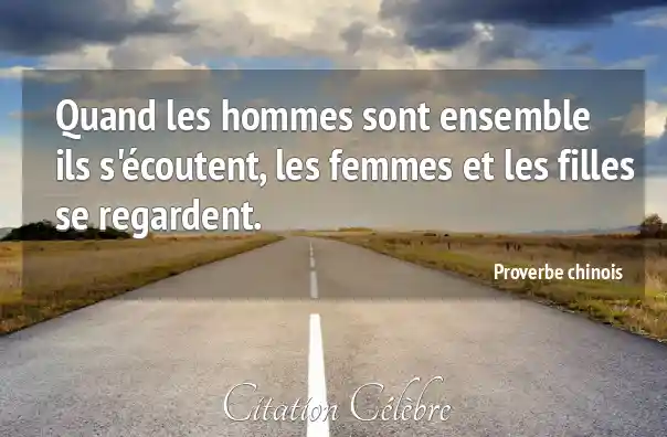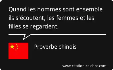 Proverbe  Chinois Ensemble : Quand les hommes sont ensemble ils s'écoutent, les femmes et...