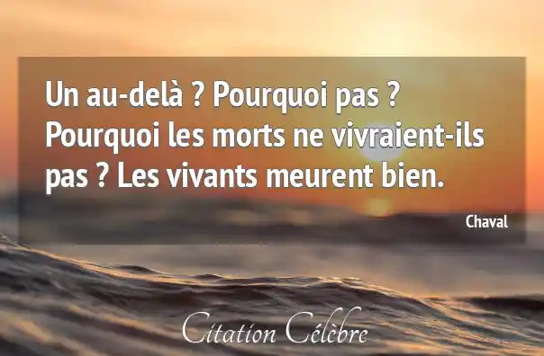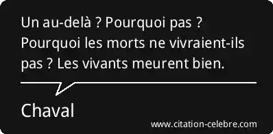 Un au-delà ? Pourquoi pas ? Pourquoi les morts ne vivraient-ils pas ? Les vivants meurent bien.