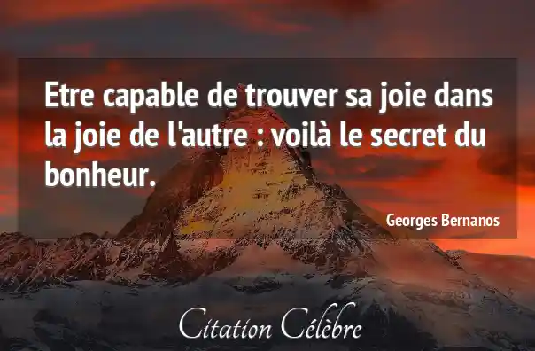 Etre capable de trouver sa joie dans la joie de l'autre : voilà le secret du bonheur.
