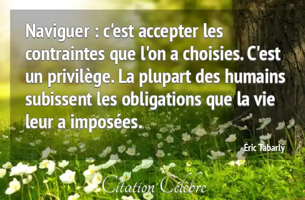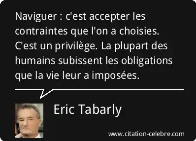 Naviguer : c'est accepter les contraintes que l'on a choisies. C'est un privilège. La plupart des humains subissent les obligations que la vie leur a imposées.