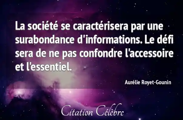 La société se caractérisera par une surabondance d'informations. Le défi sera de ne pas confondre l'accessoire et l'essentiel.