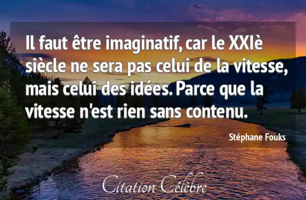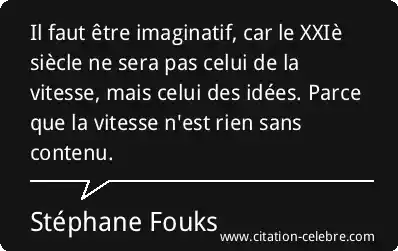 Il faut être imaginatif, car le XXIè siècle ne sera pas celui de la vitesse, mais celui des idées. Parce que la vitesse n'est rien sans contenu.