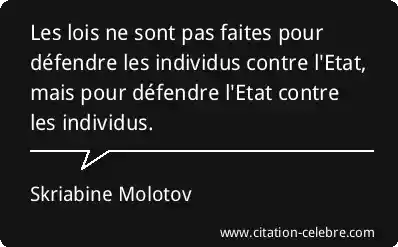 Les lois ne sont pas faites pour défendre les individus contre l'Etat, mais pour défendre l'Etat contre les individus.
