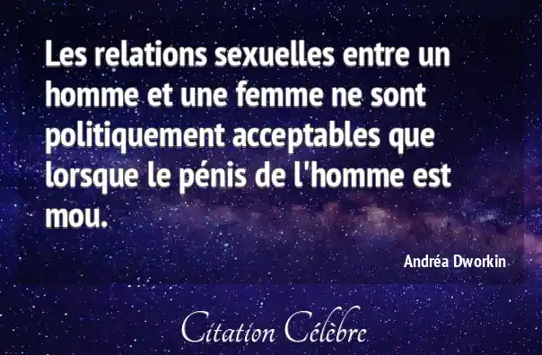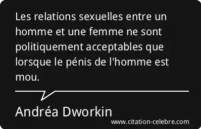 Les relations sexuelles entre un homme et une femme ne sont politiquement acceptables que lorsque le pénis de l'homme est mou.