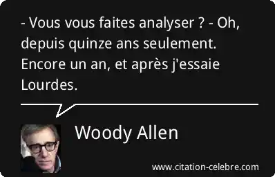- Vous vous faites analyser ? - Oh, depuis quinze ans seulement. Encore un an, et après j'essaie Lourdes.