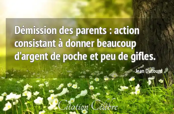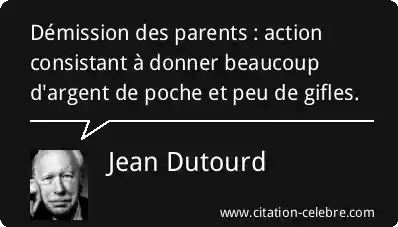 Citation Jean Dutourd argent : Démission des parents : action consistant à donner beaucoup d'argent...