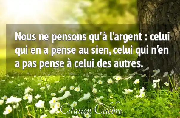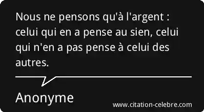 Nous ne pensons qu'à l'argent : celui qui en a pense au sien, celui qui n'en a pas pense à celui des autres.