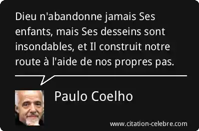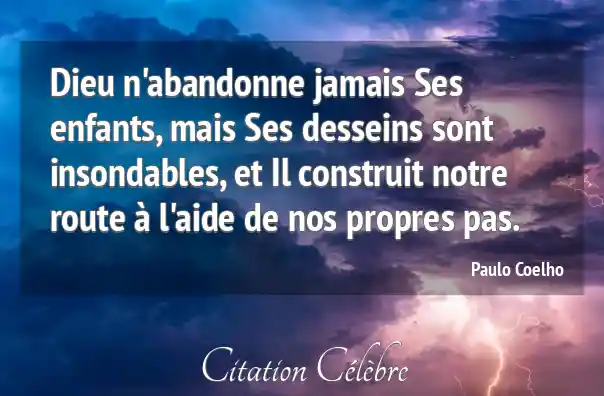 Dieu n'abandonne jamais Ses enfants, mais Ses desseins sont insondables, et Il construit notre route à l'aide de nos propres pas.
