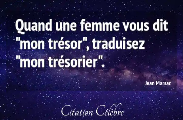 Quand une femme vous dit "mon trésor", traduisez "mon trésorier".
