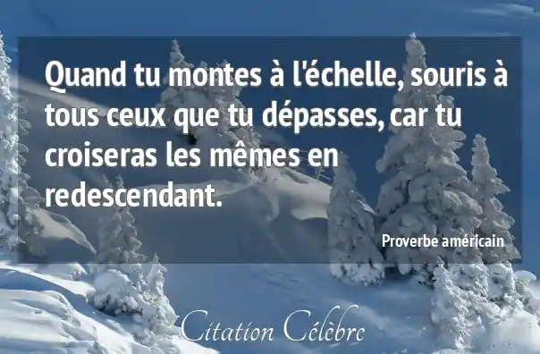 Quand tu montes à l'échelle, souris à tous ceux que tu dépasses, car tu croiseras les mêmes en redescendant.