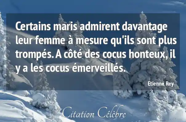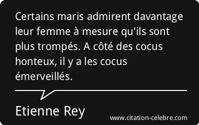 Certains maris admirent davantage leur femme à mesure qu'ils sont plus trompés. A côté des cocus honteux, il y a les cocus émerveillés.